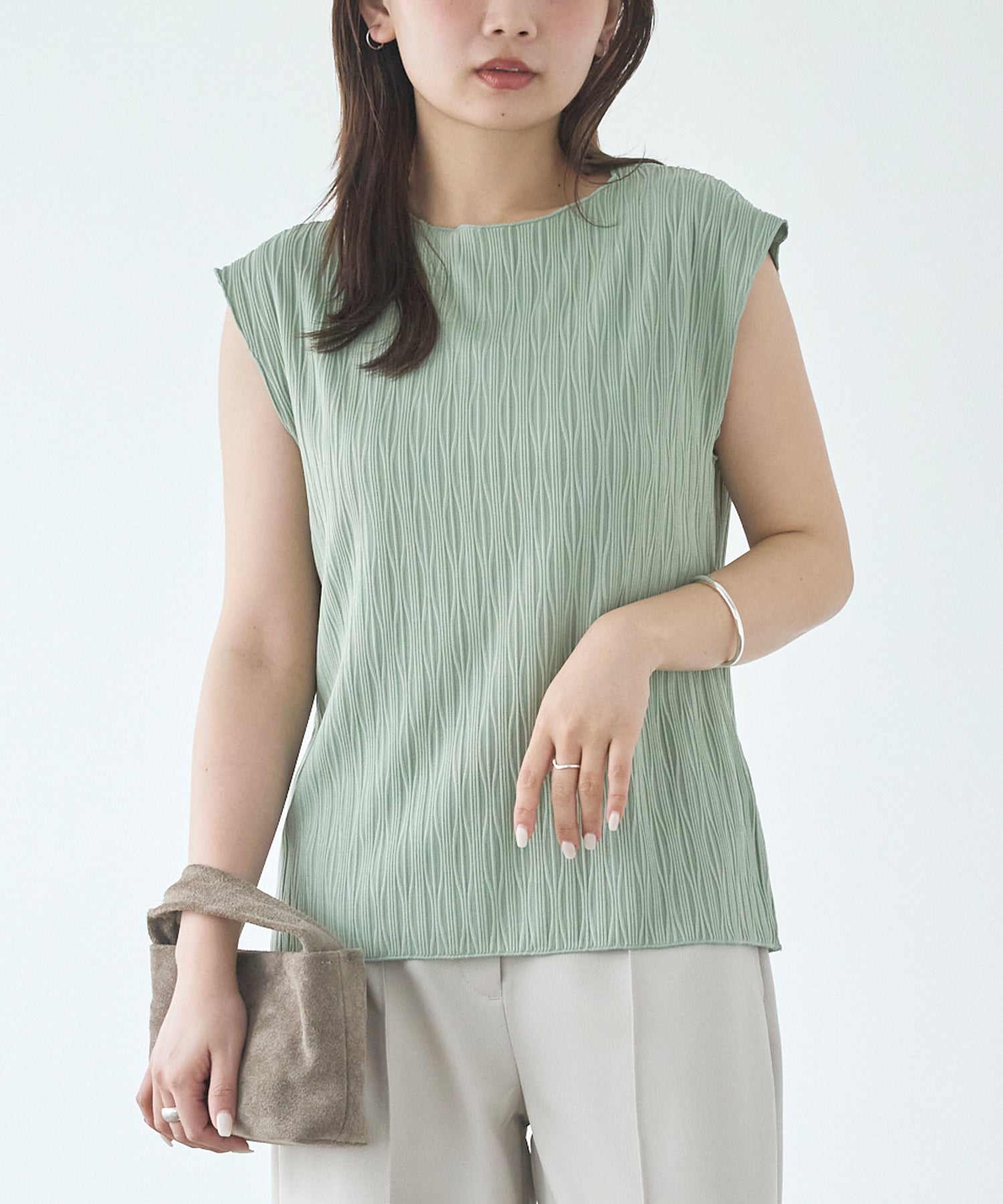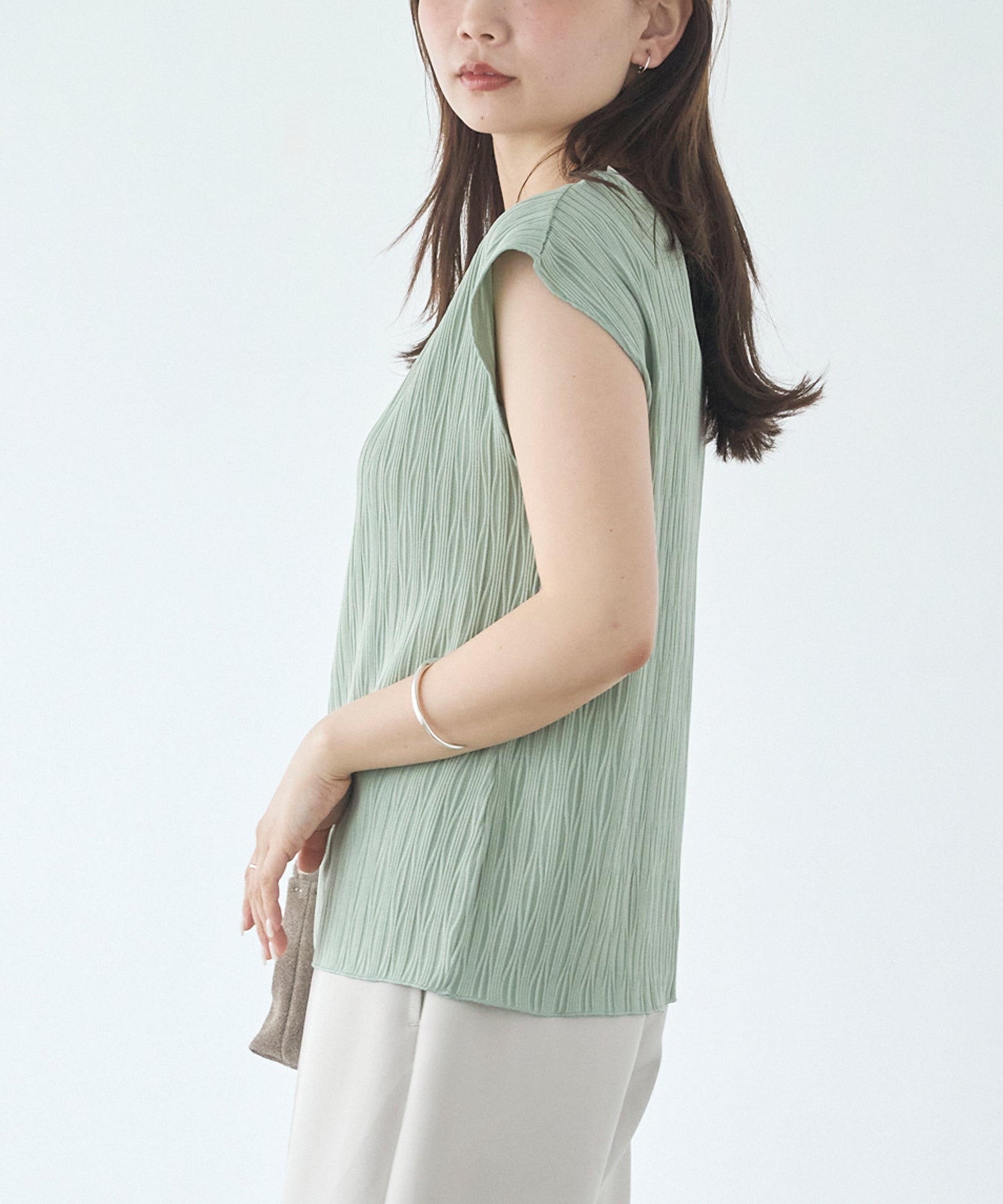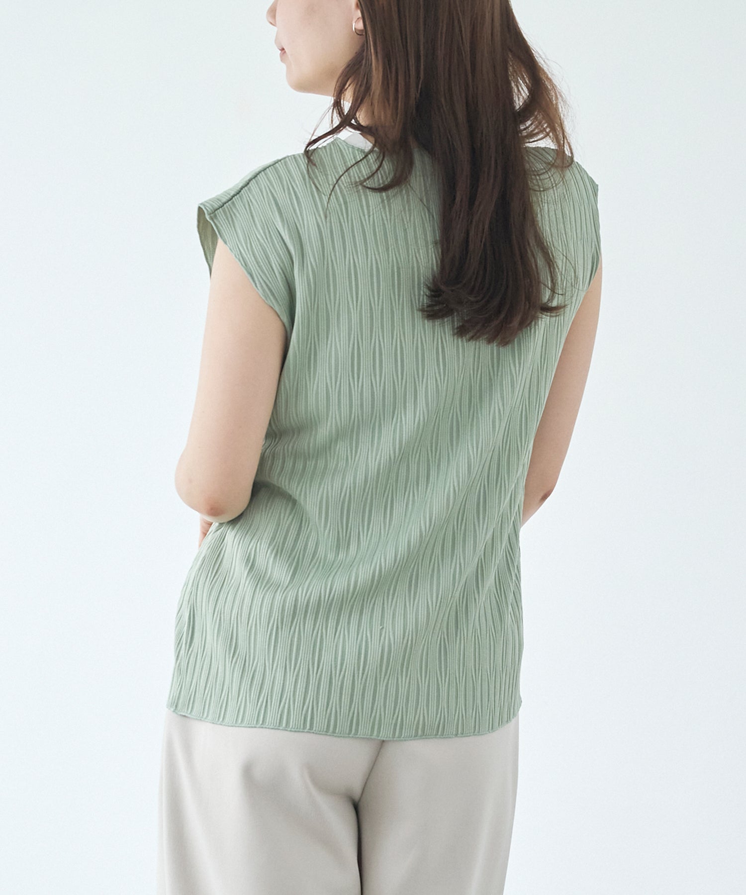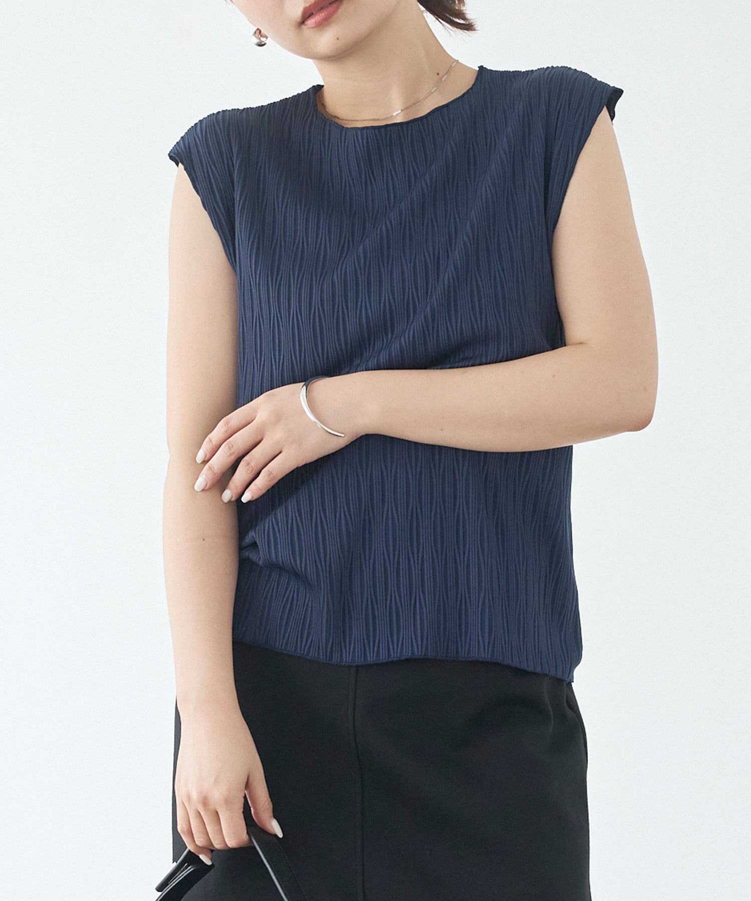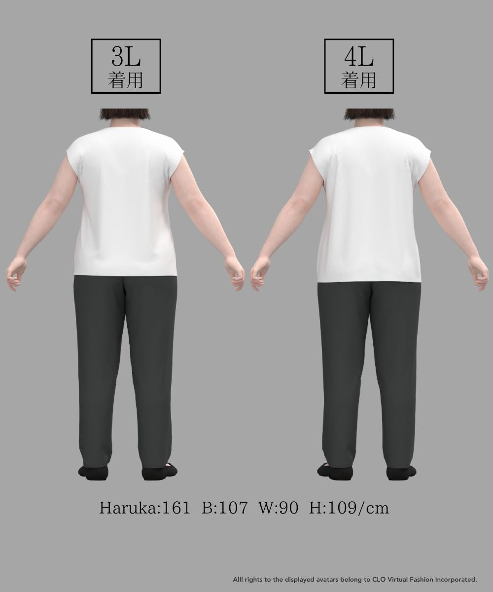 ■デザインカジュアルさとエレガントさを併せ持ったカットプルオーバー。ほんのり肩にかかるフレンチスリーブデザインで、ノースリーブのような軽やかさもありながら、気になる肩まわりはさりげなくカバーしてくれます。ウェーブ柄で、縦のラインが強調されスッキリと見えるのもポイントです。サラッとしたソフトな肌あたりで、ストレッチ性があり着心地も抜群です。■素材柔らかな肌触りで伸縮性のあるカットソー素材。■コーディネートカジュアルなデニムからフェミニンなスカートまで合わせやすいルックスで、オンオフ問わず活躍すること間違いなしです。同素材のスカートとのセットアップスタイルもオススメです。・ウェーブ柄・お手入れ方法:洗濯機可・セットアップ着用可・マルチサイズ/大きいサイズ対応(M/LL/3L/4L/5L)