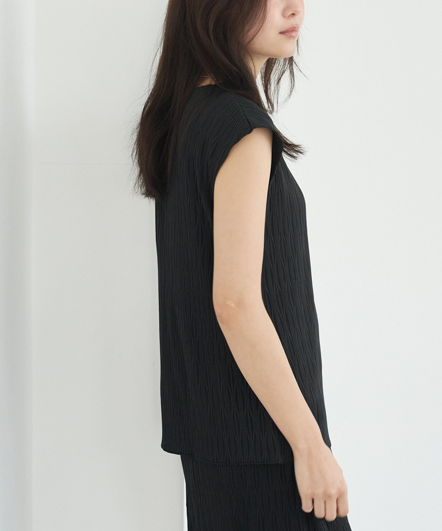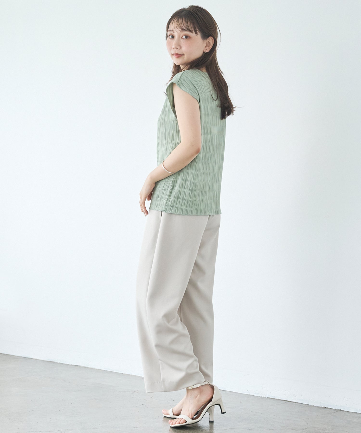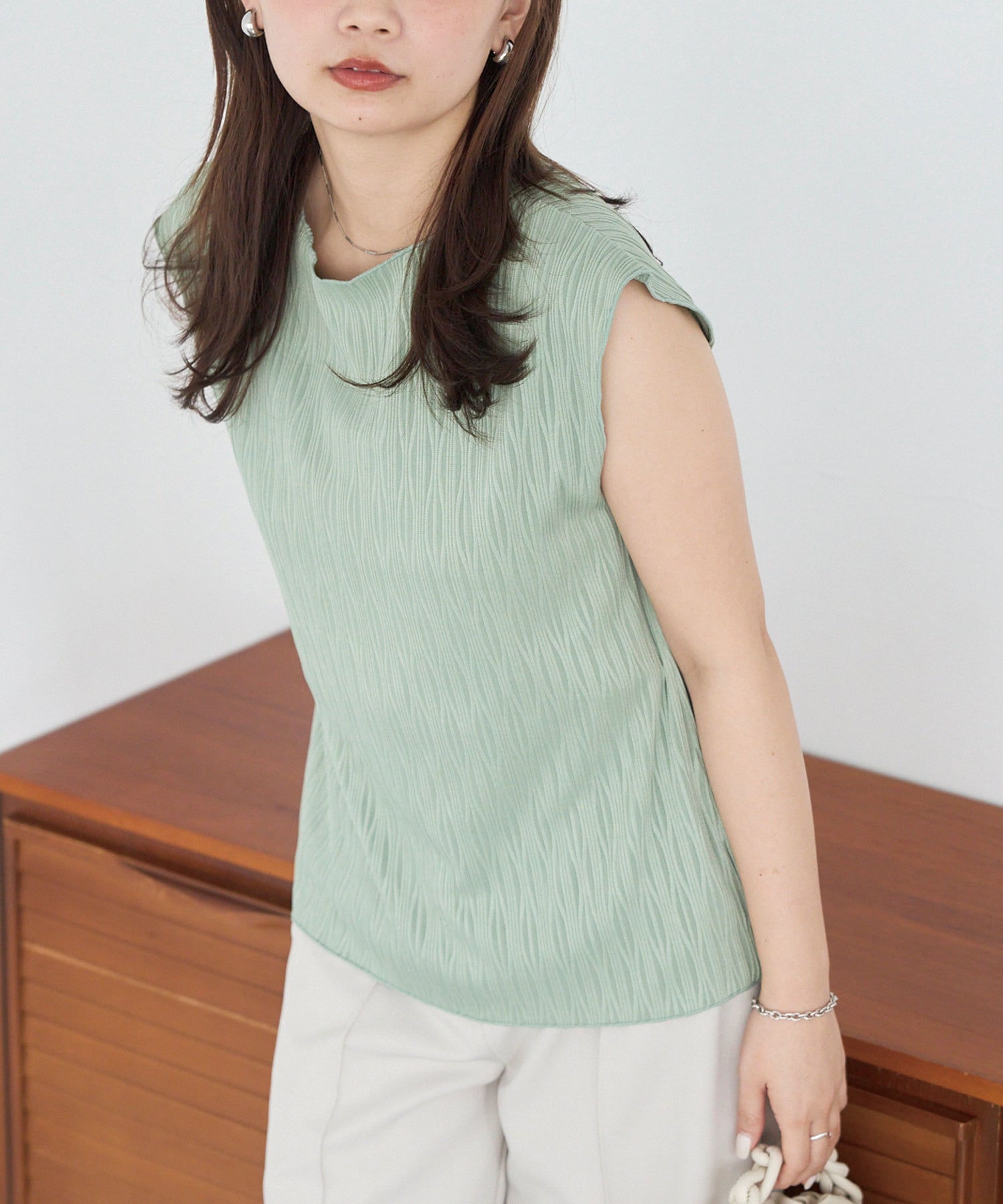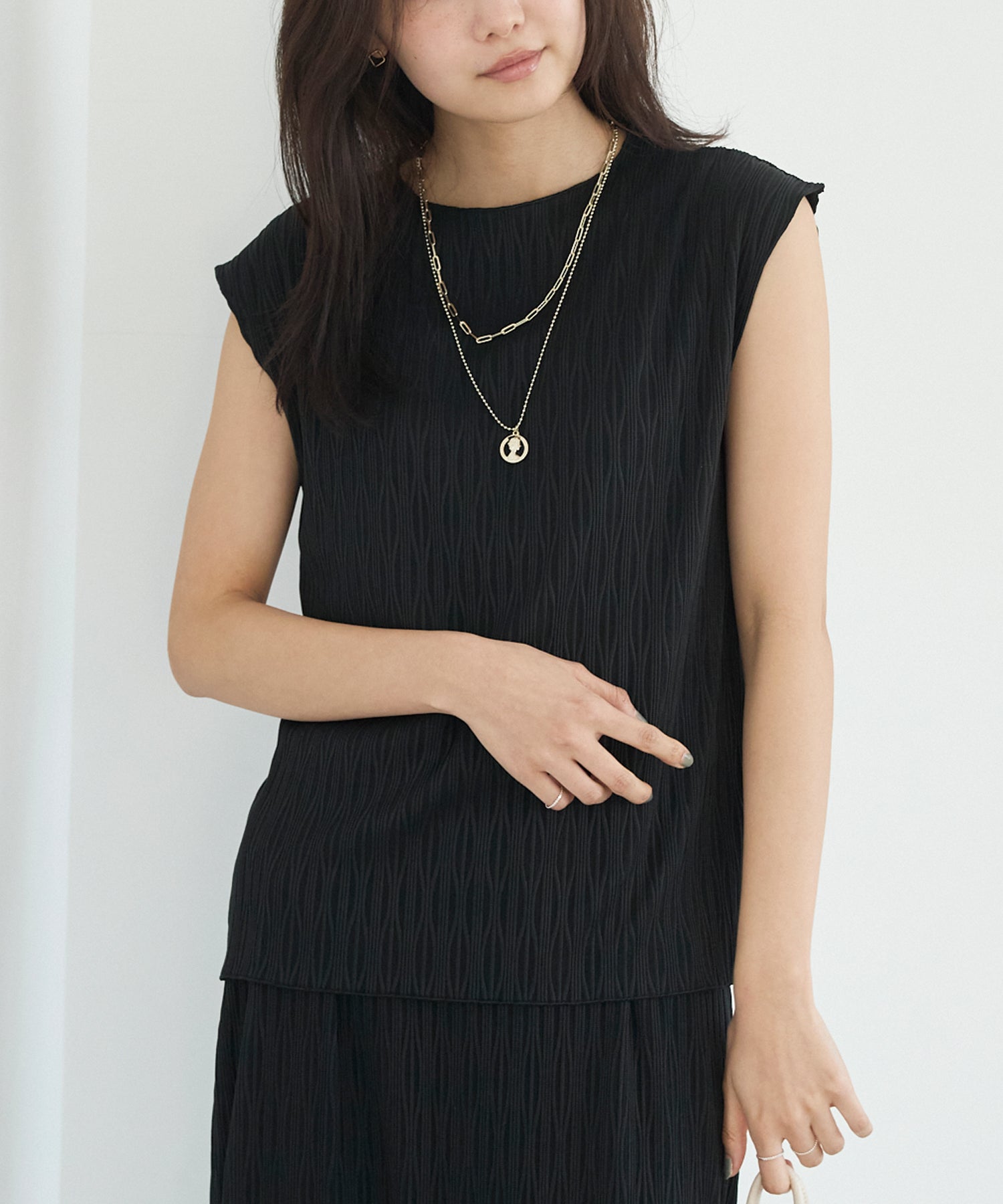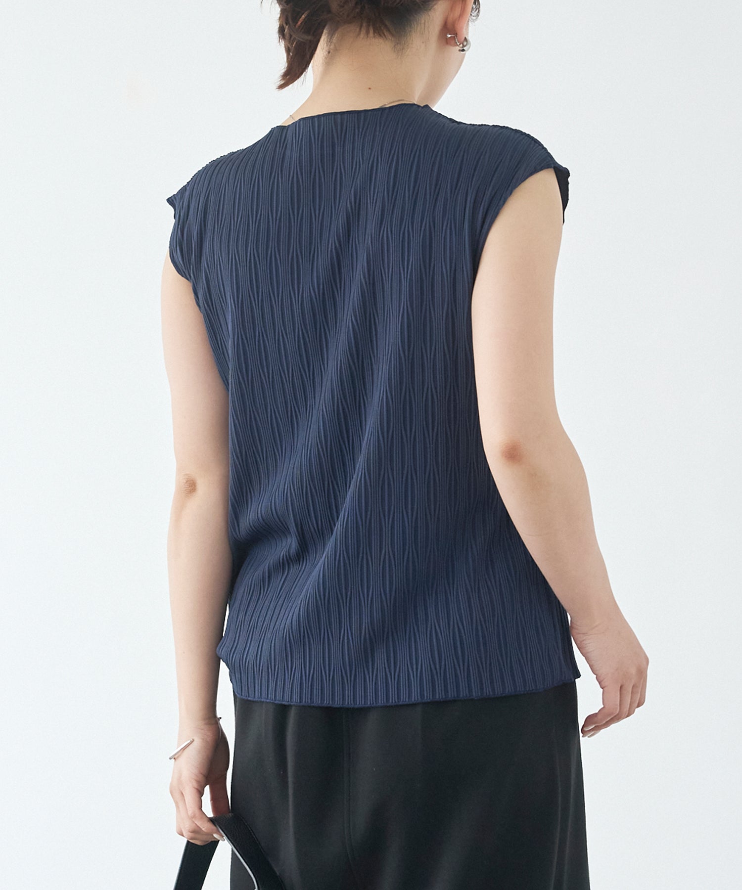 ■デザインカジュアルさとエレガントさを併せ持ったカットプルオーバー。ほんのり肩にかかるフレンチスリーブデザインで、ノースリーブのような軽やかさもありながら、気になる肩まわりはさりげなくカバーしてくれます。ウェーブ柄で、縦のラインが強調されスッキリと見えるのもポイントです。サラッとしたソフトな肌あたりで、ストレッチ性があり着心地も抜群です。■素材柔らかな肌触りで伸縮性のあるカットソー素材。■コーディネートカジュアルなデニムからフェミニンなスカートまで合わせやすいルックスで、オンオフ問わず活躍すること間違いなしです。同素材のスカートとのセットアップスタイルもオススメです。・ウェーブ柄・お手入れ方法:洗濯機可・セットアップ着用可・マルチサイズ/大きいサイズ対応(M/LL/3L/4L/5L)