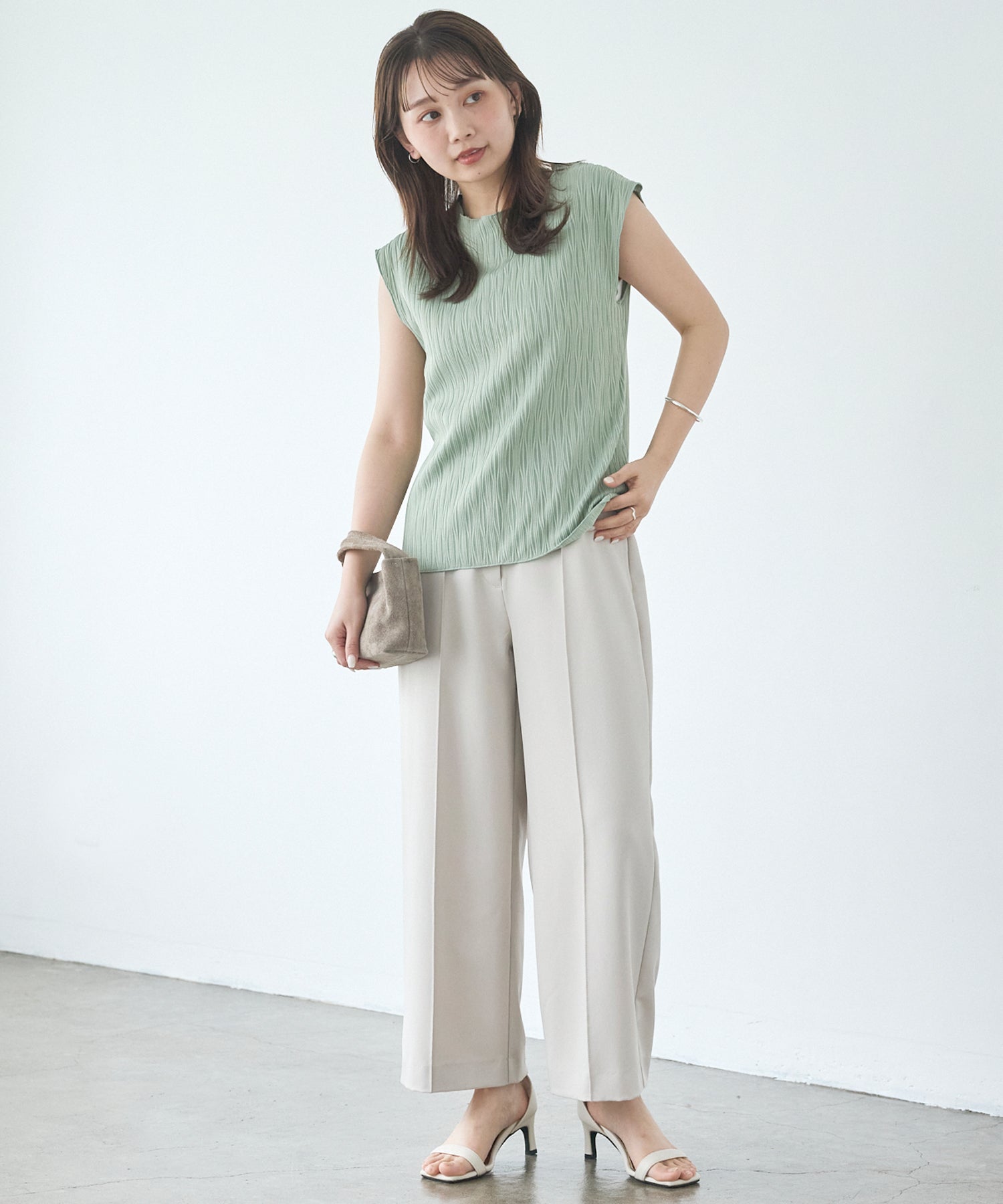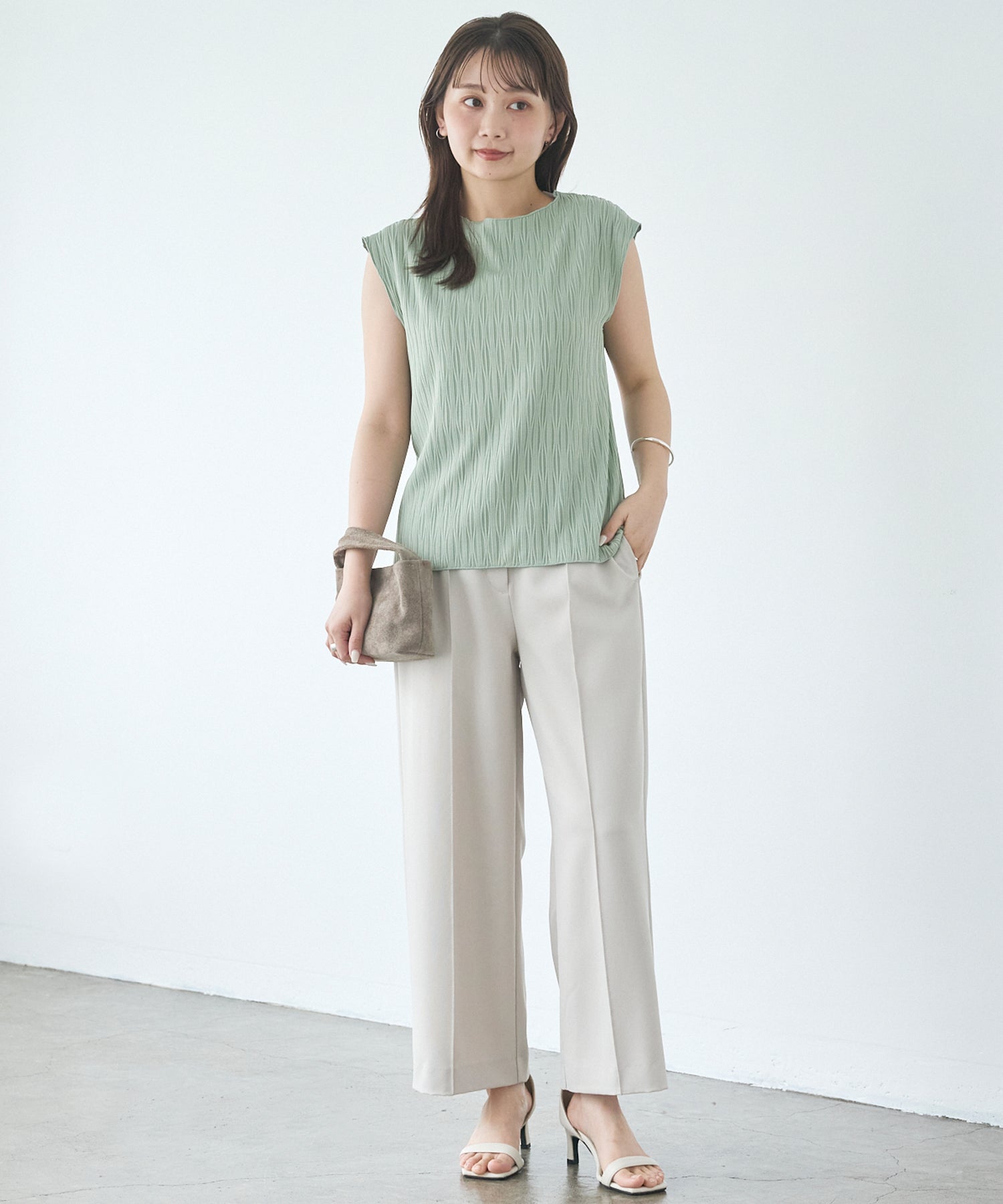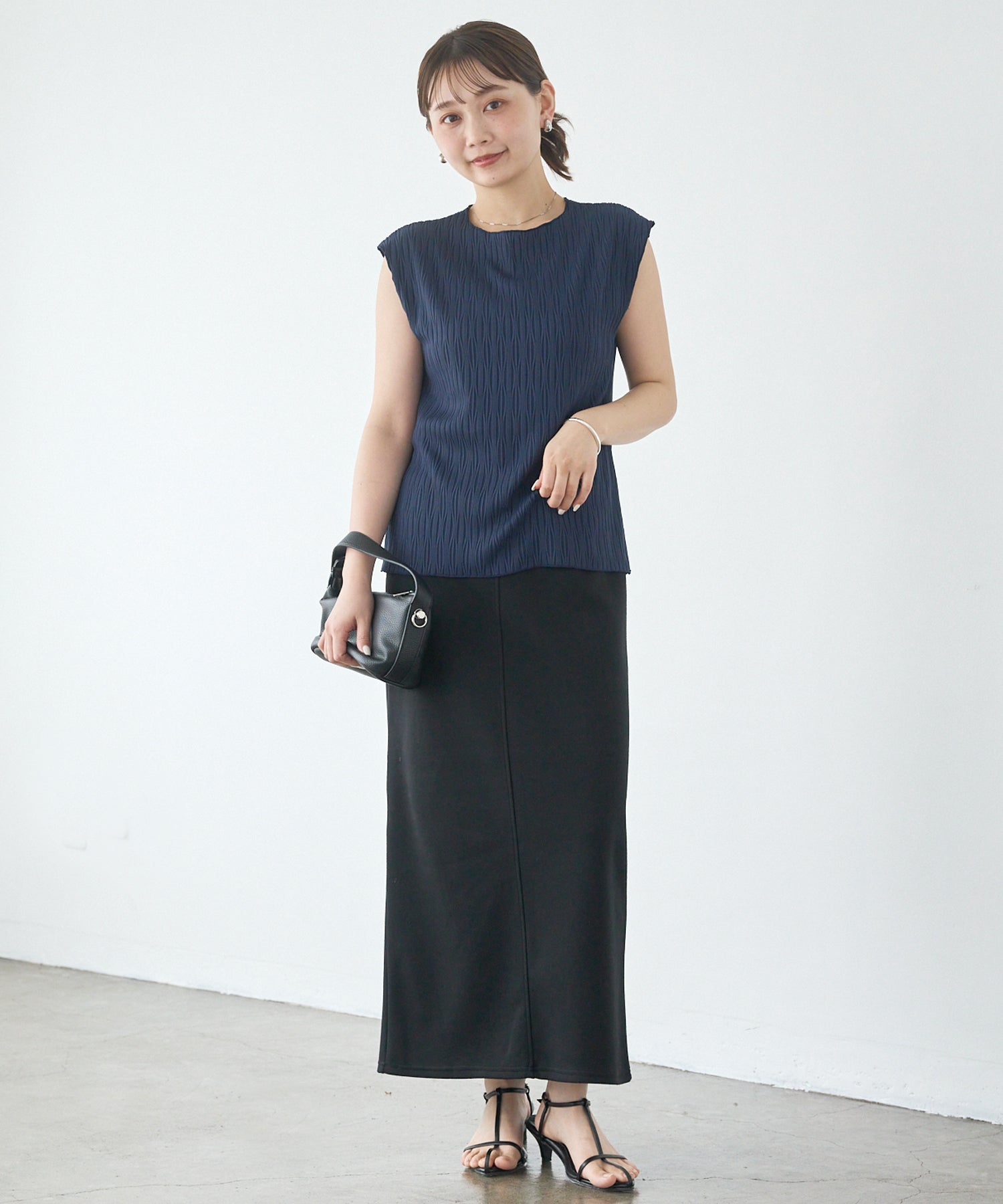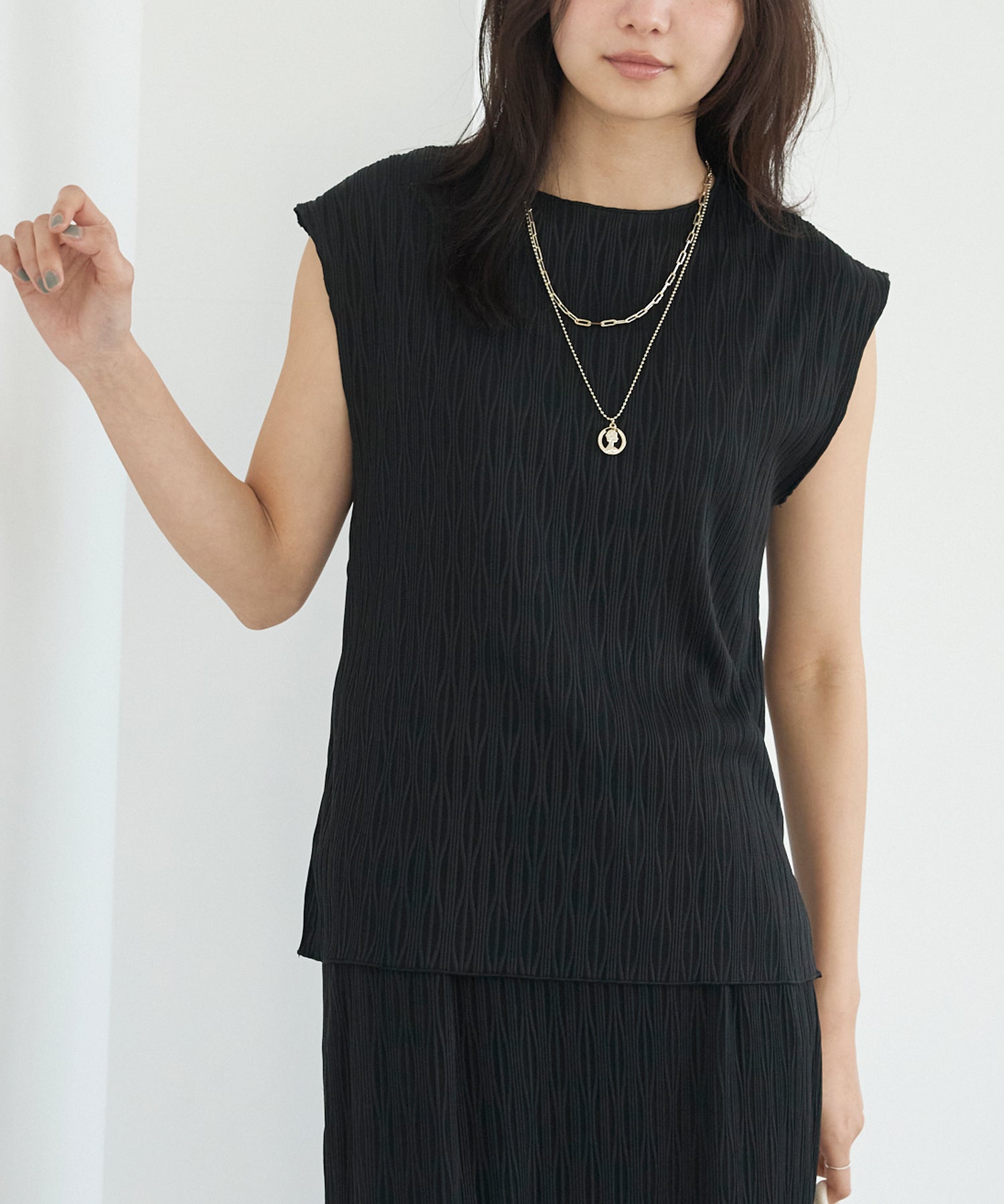 ■デザインカジュアルさとエレガントさを併せ持ったカットプルオーバー。ほんのり肩にかかるフレンチスリーブデザインで、ノースリーブのような軽やかさもありながら、気になる肩まわりはさりげなくカバーしてくれます。ウェーブ柄で、縦のラインが強調されスッキリと見えるのもポイントです。サラッとしたソフトな肌あたりで、ストレッチ性があり着心地も抜群です。■素材柔らかな肌触りで伸縮性のあるカットソー素材。■コーディネートカジュアルなデニムからフェミニンなスカートまで合わせやすいルックスで、オンオフ問わず活躍すること間違いなしです。同素材のスカートとのセットアップスタイルもオススメです。・ウェーブ柄・お手入れ方法:洗濯機可・セットアップ着用可・マルチサイズ/大きいサイズ対応(M/LL/3L/4L/5L)