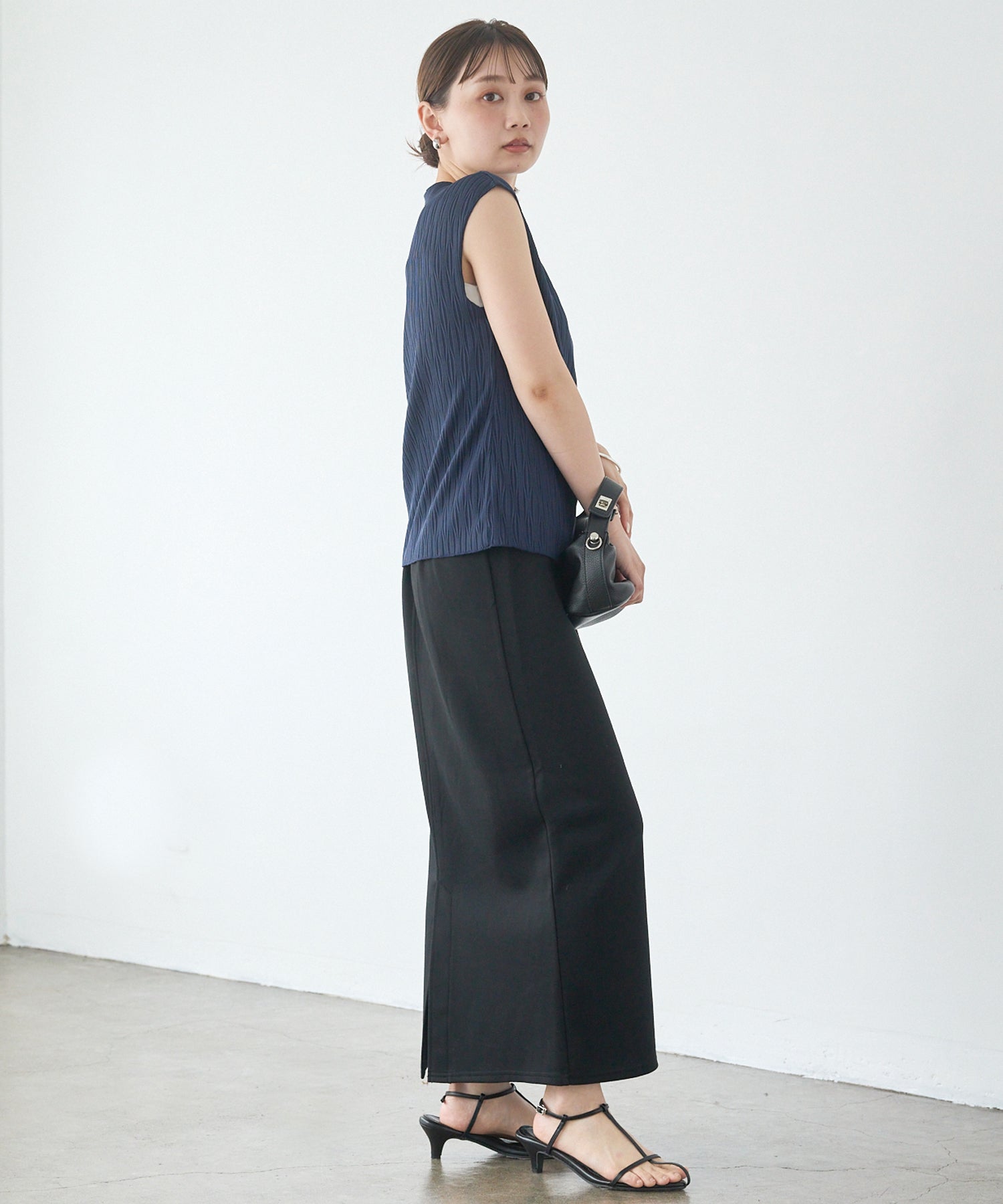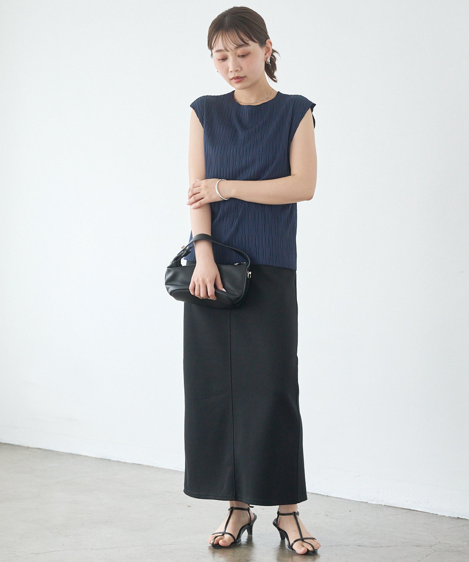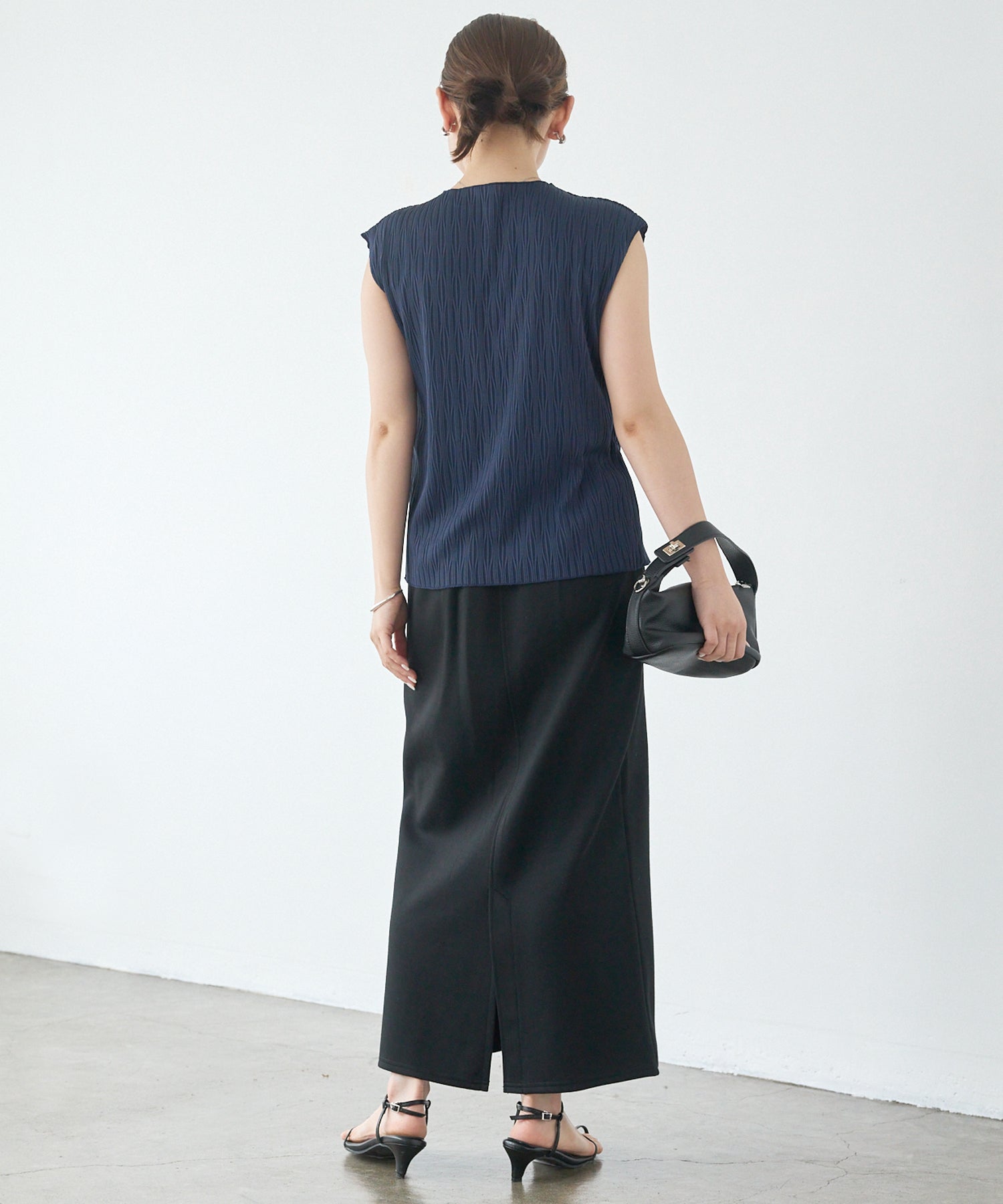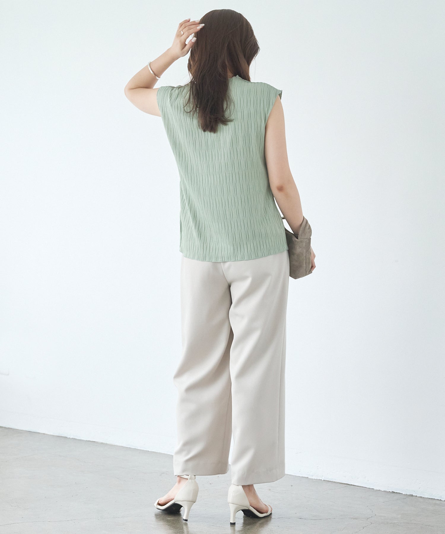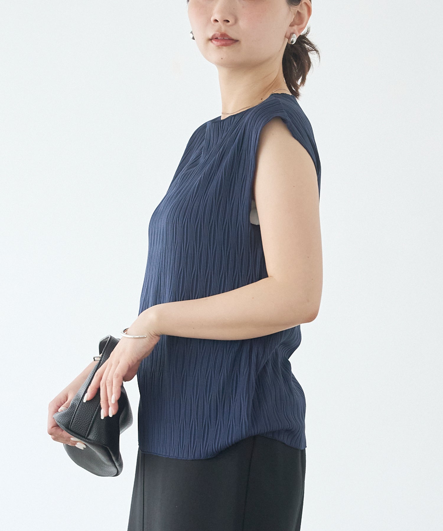 ■デザインカジュアルさとエレガントさを併せ持ったカットプルオーバー。ほんのり肩にかかるフレンチスリーブデザインで、ノースリーブのような軽やかさもありながら、気になる肩まわりはさりげなくカバーしてくれます。ウェーブ柄で、縦のラインが強調されスッキリと見えるのもポイントです。サラッとしたソフトな肌あたりで、ストレッチ性があり着心地も抜群です。■素材柔らかな肌触りで伸縮性のあるカットソー素材。■コーディネートカジュアルなデニムからフェミニンなスカートまで合わせやすいルックスで、オンオフ問わず活躍すること間違いなしです。同素材のスカートとのセットアップスタイルもオススメです。・ウェーブ柄・お手入れ方法:洗濯機可・セットアップ着用可・マルチサイズ/大きいサイズ対応(M/LL/3L/4L/5L)