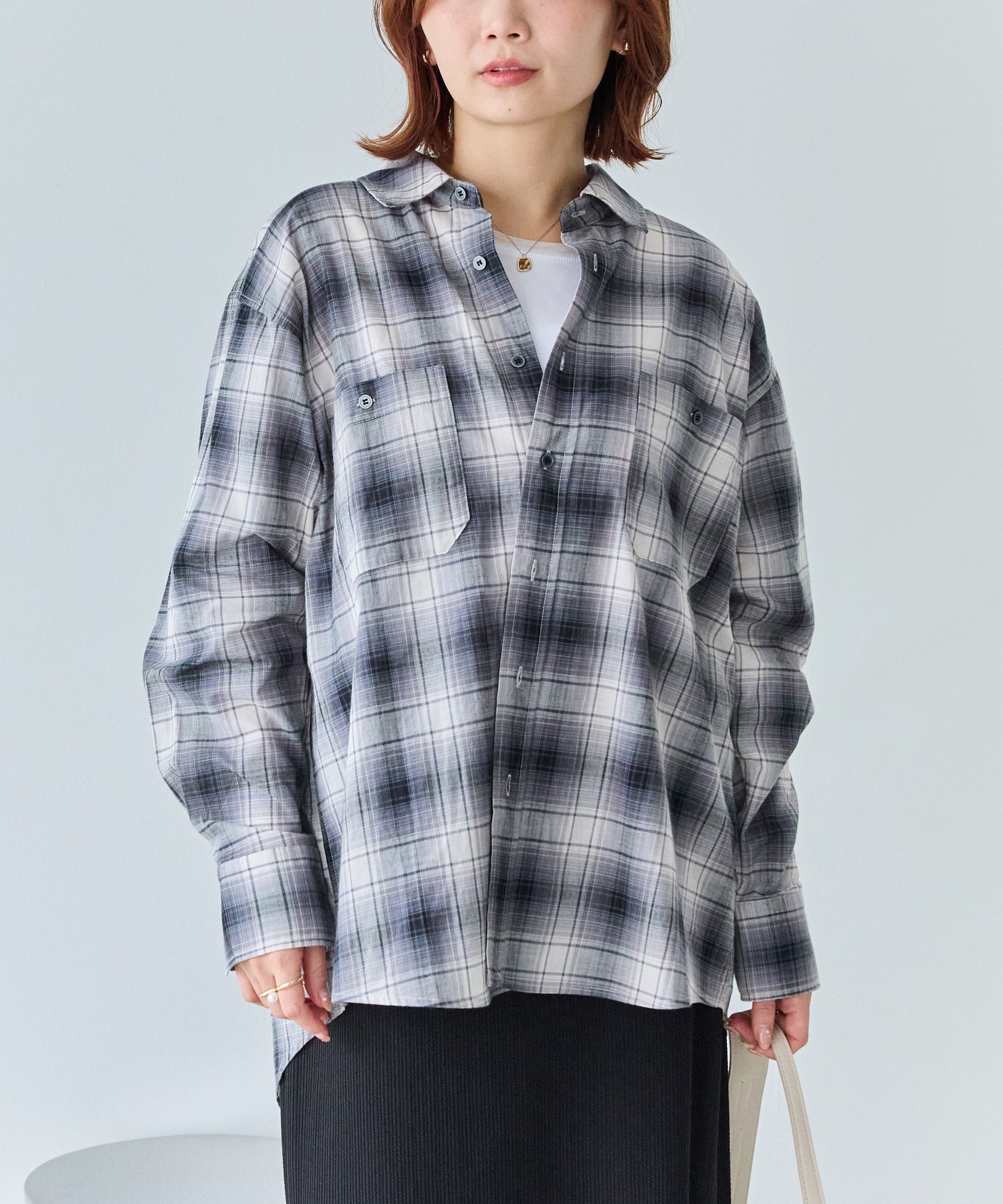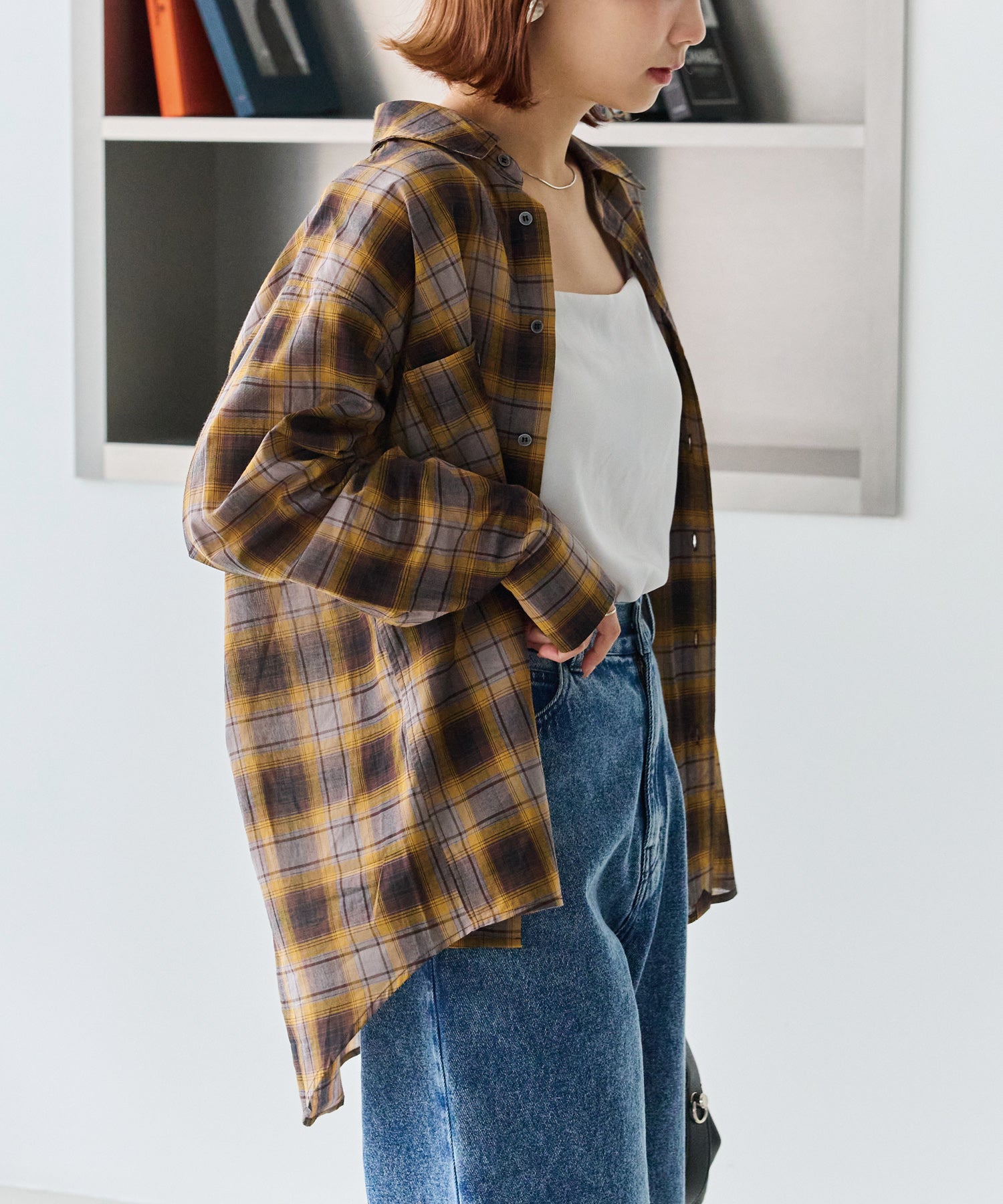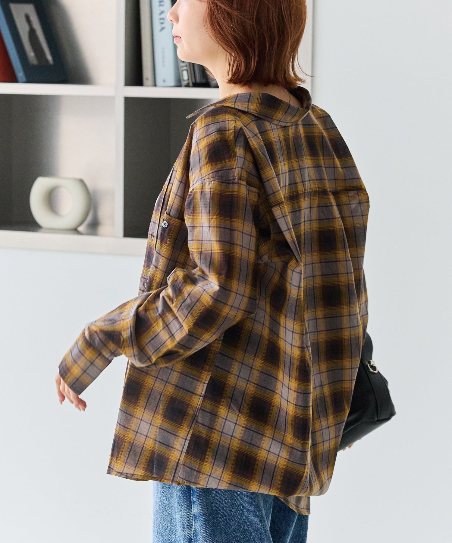■デザイン軽やかな素材感が、いつものスタイリングに抜け感をプラスしてくれるチェックシャツ。