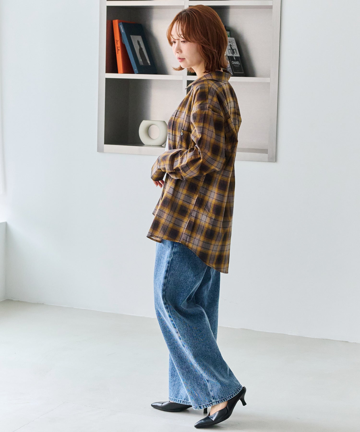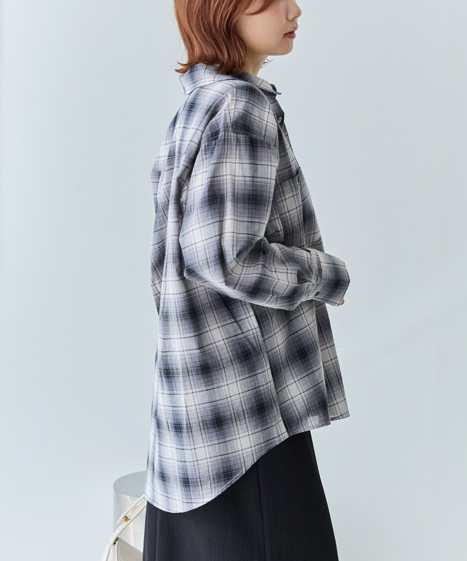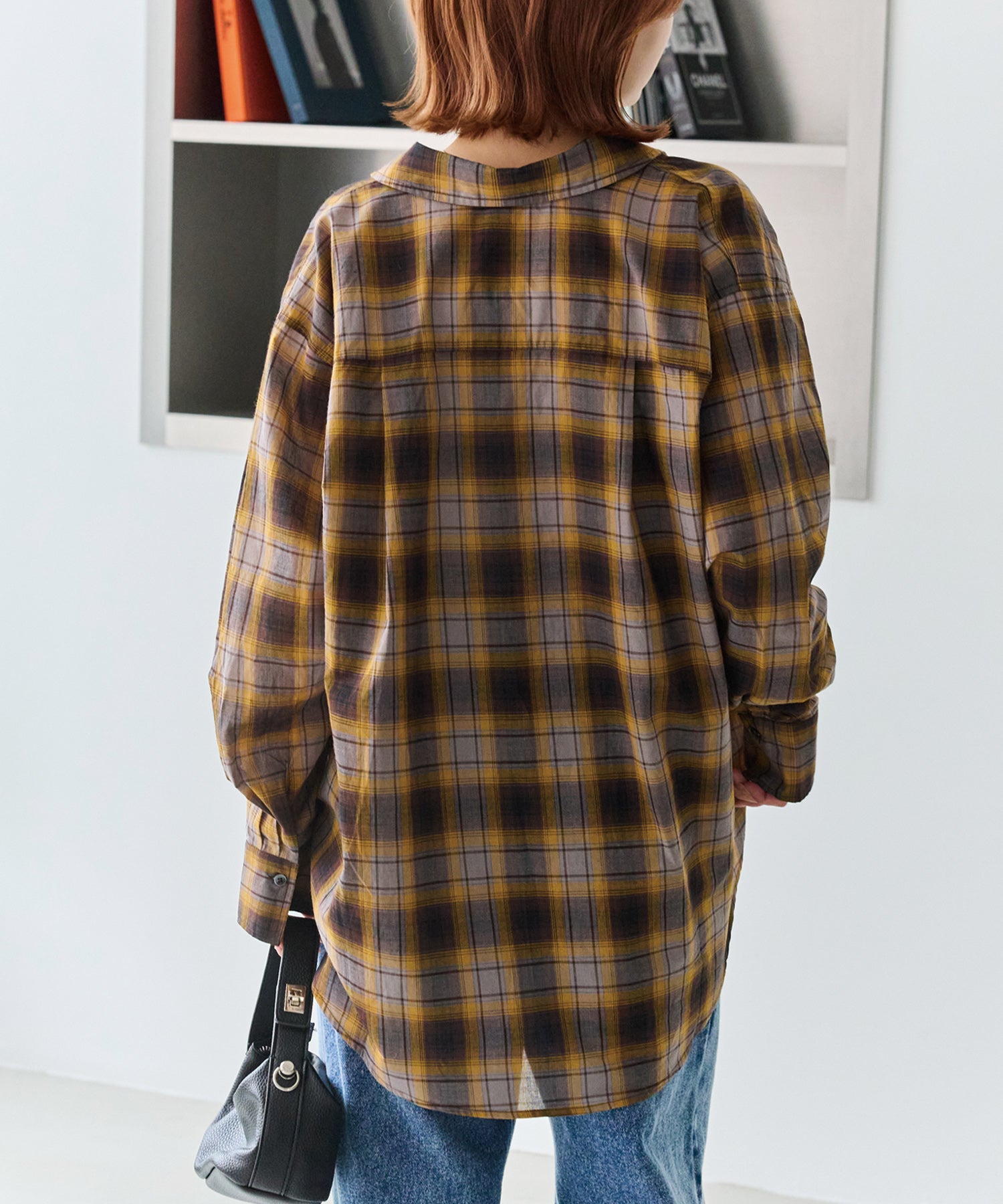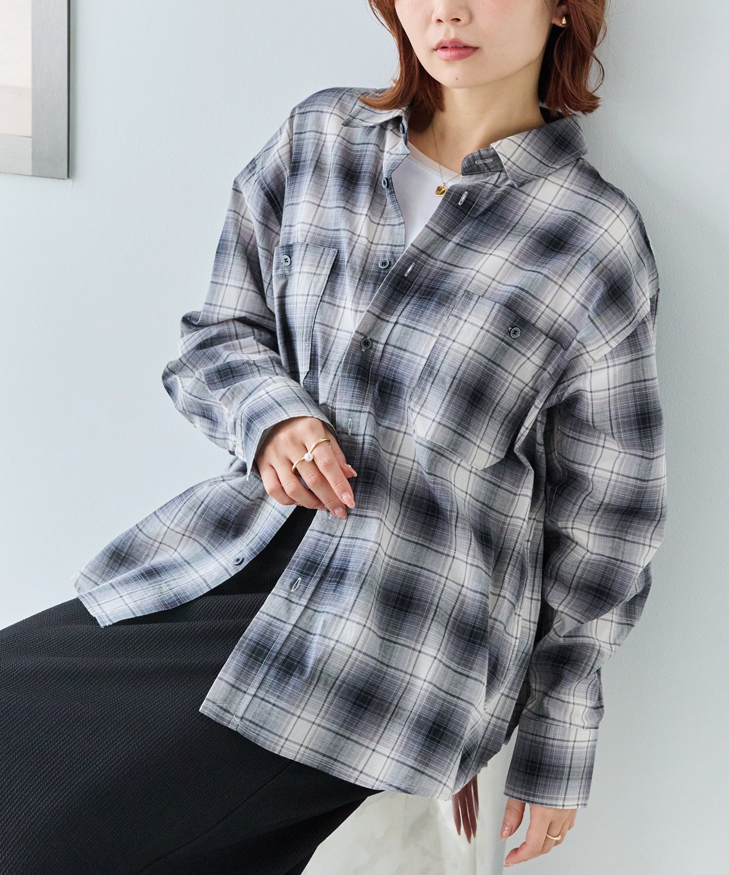 ■デザイン軽やかな素材感が、いつものスタイリングに抜け感をプラスしてくれるチェックシャツ。