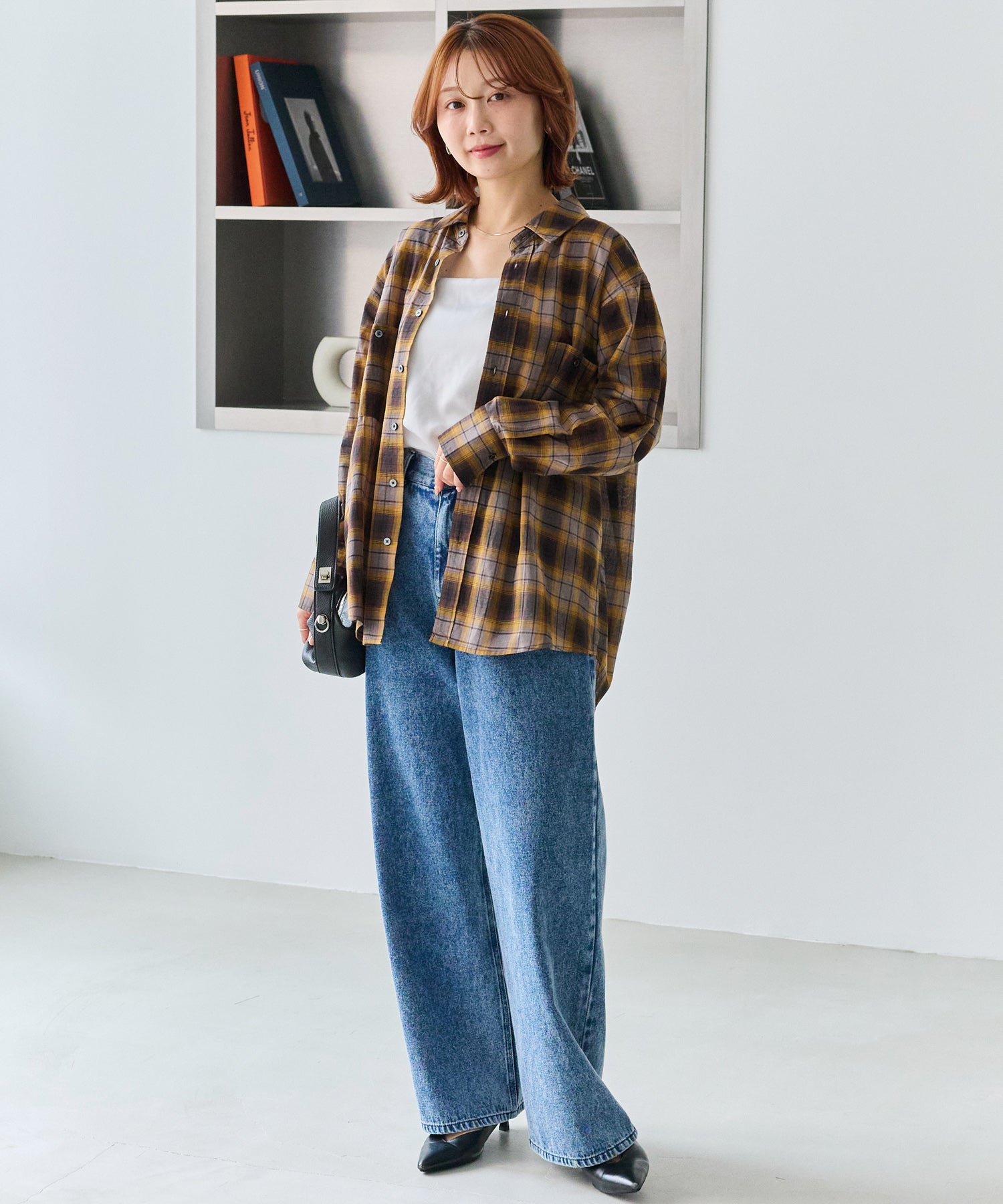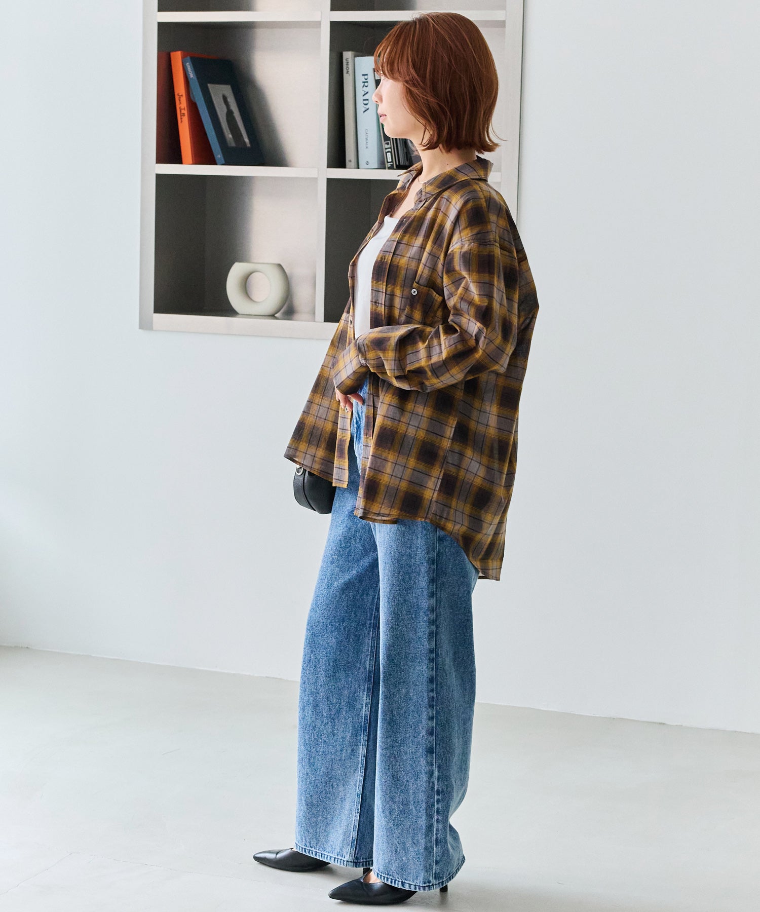 先染めならではの奥行きのあるチェック柄が、大人カジュアルな雰囲気を演出します。