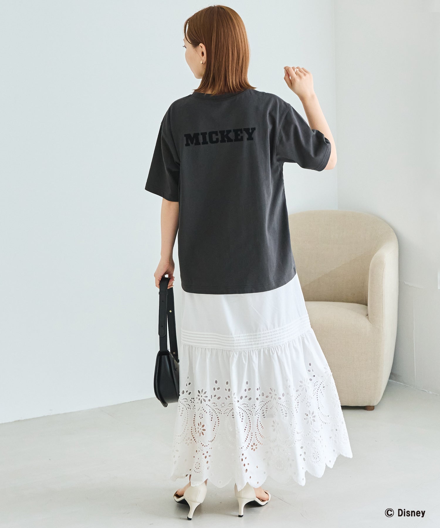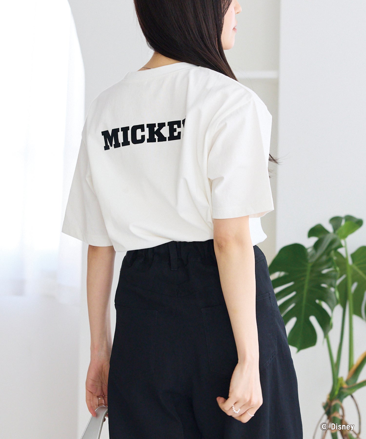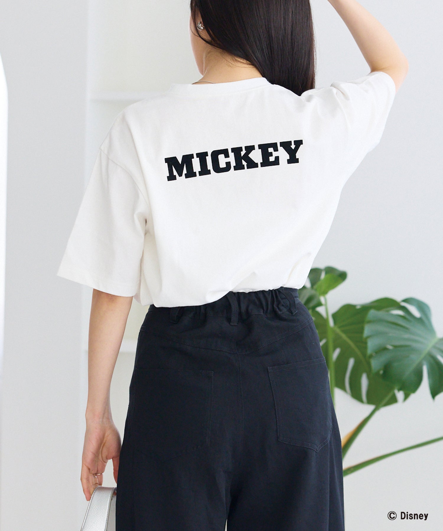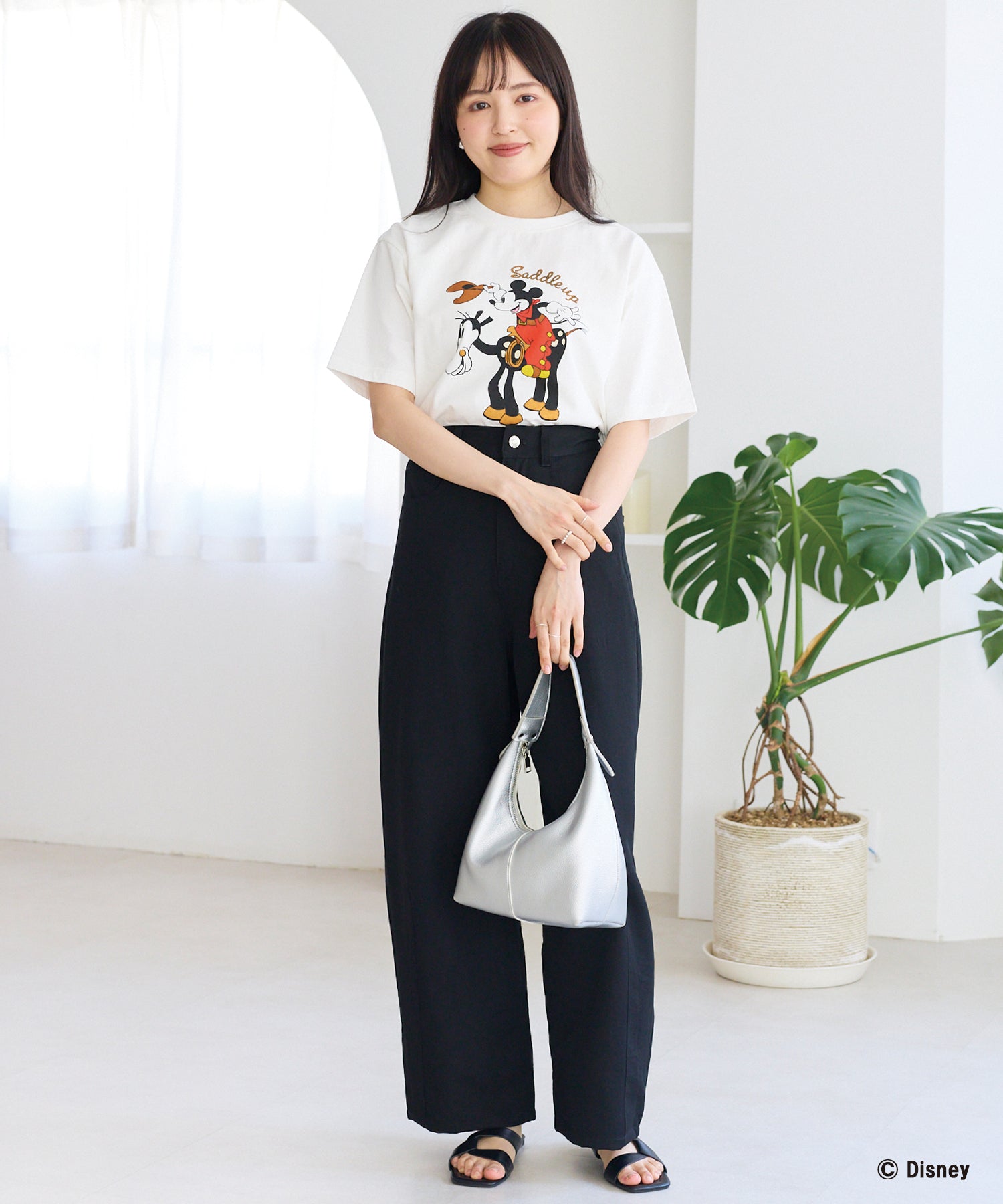 ■デザイントレンドのウエスタンテイストを取り入れた、存在感のあるプリントTシャツ。レトロタッチのミッキーデザインがこなれた雰囲気を演出し、フロントの遊び心あるグラフィックがコーデの主役に。バックには立体感のあるフロッキープリントのロゴを施し、シンプルながらも後ろ姿まで印象的に仕上げています。1枚で着映えする、カジュアルスタイルにぴったりのアイテムです。■素材肌触りの良いコットン素材を使用し、さらっとした着心地が魅力。程よい厚みで透けにくく、ロングシーズン着用可能です。デイリー使いしやすく、お手入れもしやすいのも嬉しいポイント。■コーディネートデニムやワイドパンツと合わせた王道カジュアルはもちろん、スカートと合わせた女性らしいスタイリングもおすすめ。ゆったりとしたシルエットで、アウトスタイルでもバランスよく着こなせます。1枚着としてはもちろん、シャツやジャケットのインナーとしても活躍する着回し力の高いアイテムです。