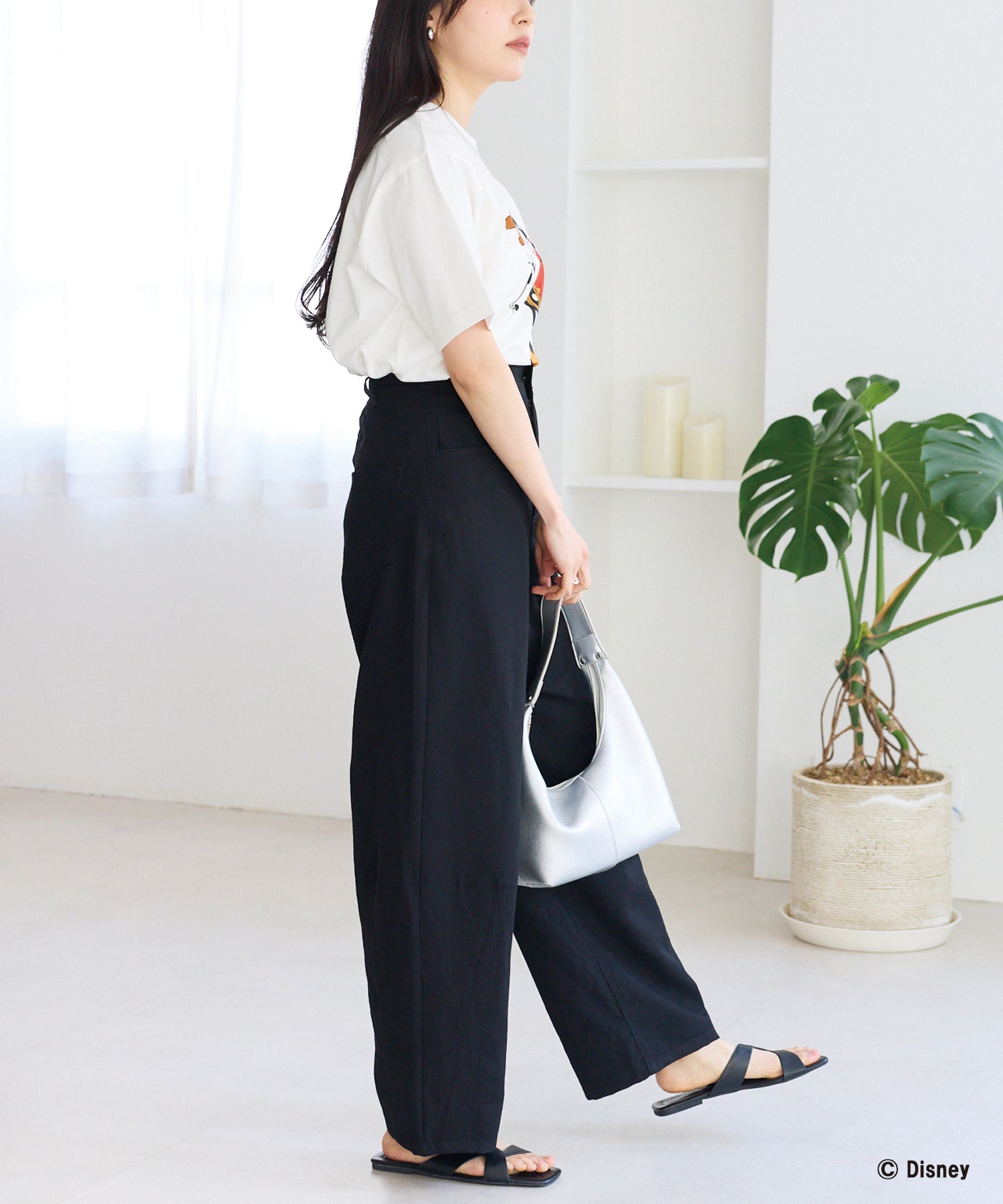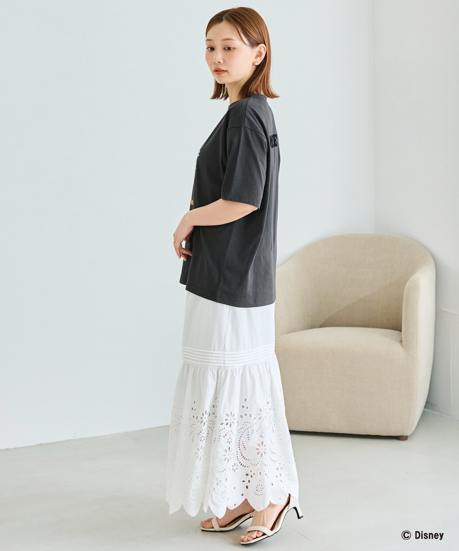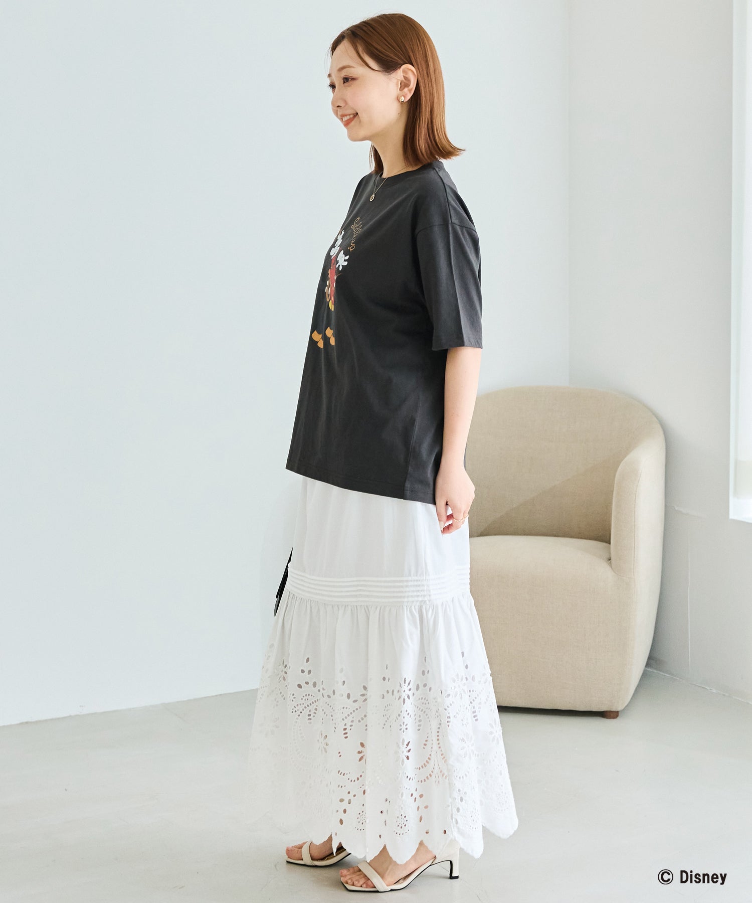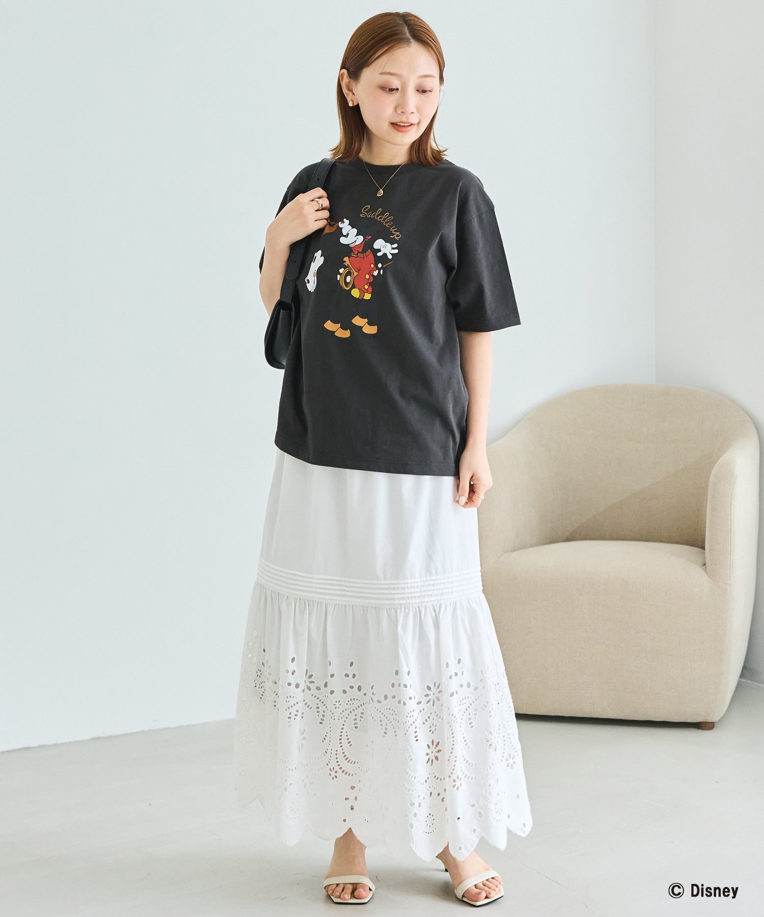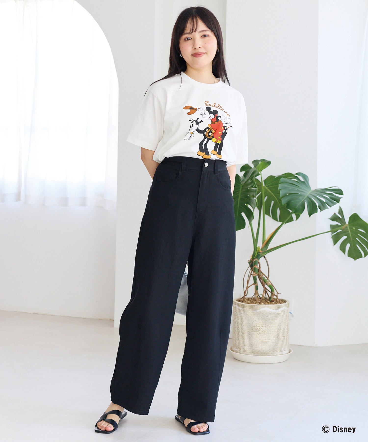 ■デザイントレンドのウエスタンテイストを取り入れた、存在感のあるプリントTシャツ。レトロタッチのミッキーデザインがこなれた雰囲気を演出し、フロントの遊び心あるグラフィックがコーデの主役に。バックには立体感のあるフロッキープリントのロゴを施し、シンプルながらも後ろ姿まで印象的に仕上げています。1枚で着映えする、カジュアルスタイルにぴったりのアイテムです。■素材肌触りの良いコットン素材を使用し、さらっとした着心地が魅力。程よい厚みで透けにくく、ロングシーズン着用可能です。デイリー使いしやすく、お手入れもしやすいのも嬉しいポイント。■コーディネートデニムやワイドパンツと合わせた王道カジュアルはもちろん、スカートと合わせた女性らしいスタイリングもおすすめ。ゆったりとしたシルエットで、アウトスタイルでもバランスよく着こなせます。1枚着としてはもちろん、シャツやジャケットのインナーとしても活躍する着回し力の高いアイテムです。