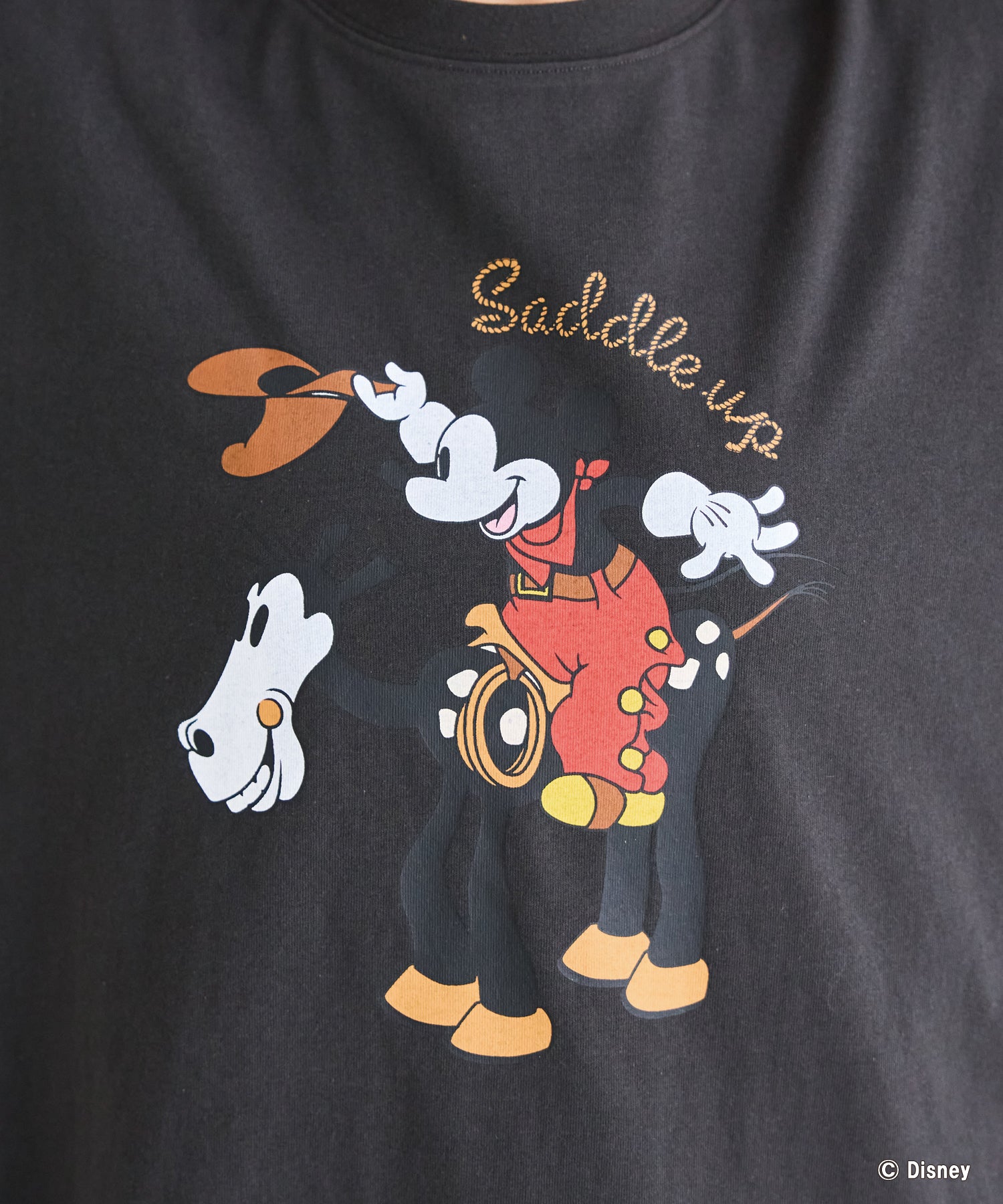 【Disney】別注 <ミッキー>ウエスタン フロッキーバックロゴTシャツ