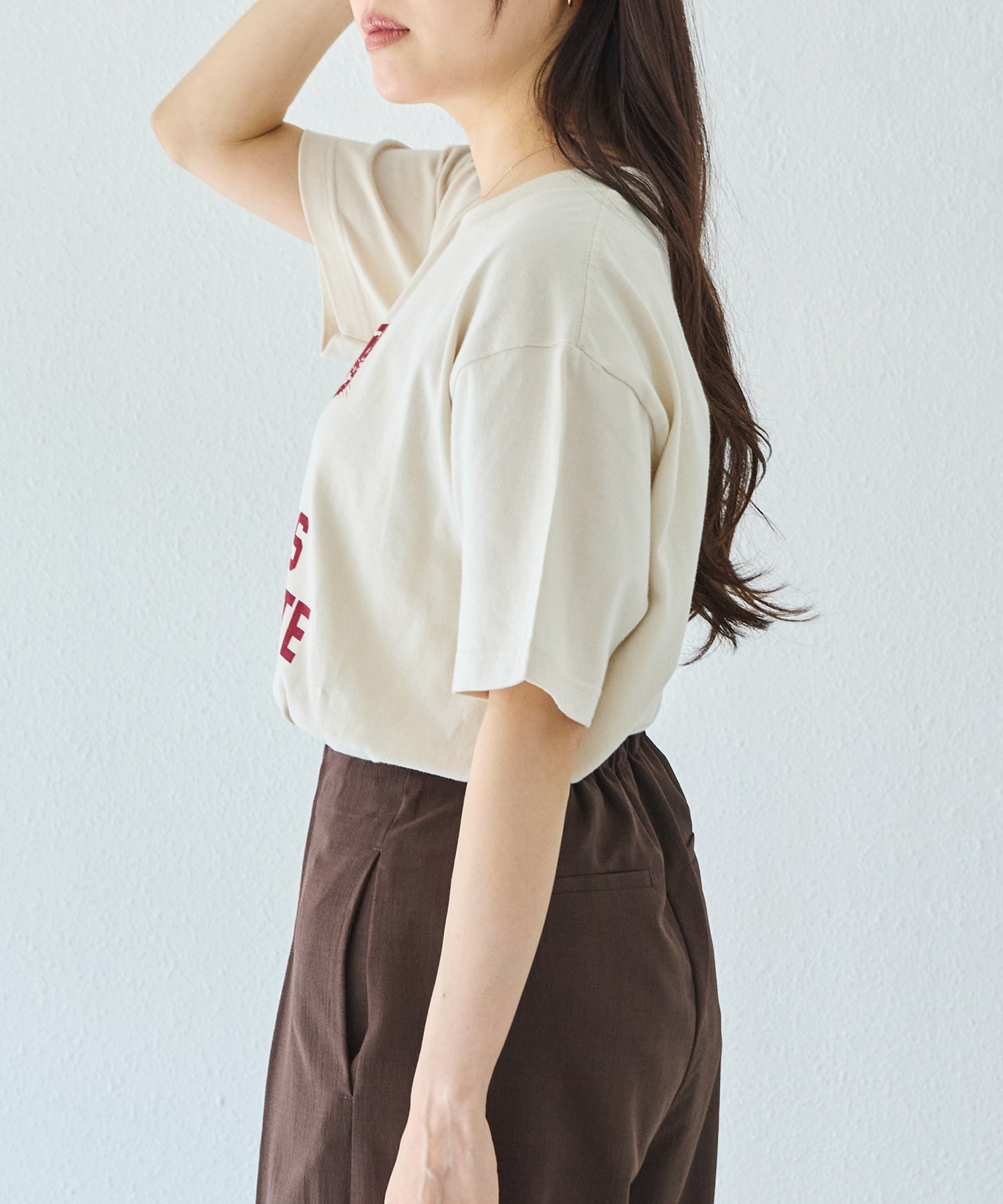 <お届け予定日:5月中旬>※通常商品との同時購入はできません■デザイン配色にこだわったプリントTシャツ。それぞれ異なるロゴ・グラフィックを施した4種類展開で、スタイリングに合わせて選べるのが魅力です。程よくゆとりのあるシルエットで、身体のラインを拾いにくくリラックスした着心地に。シンプルなクルーネックとベーシックなフォルムで、デイリーに使いやすい1枚です。カジュアルながらも大人が取り入れやすい、こなれ感のあるデザインに仕上げています。■素材コットン素材を使用。程よい厚みでロングシーズン着用しやすく、デイリー使いにぴったりの一枚です。■コーディネートデニムやワイドパンツと合わせた定番カジュアルはもちろん、ロングスカートやきれいめボトムと合わせたミックススタイルもおすすめ。フロントインやタックインでバランスを変えることで、幅広い着こなしが楽しめます。ジャケットやシャツのインナーとしても活躍し、ロングシーズン着回せる万能アイテムです。・お手入れ方法:洗濯機可・マルチサイズ/大きいサイズ対応(M/LL/3L/4L)---------------------------------------透け感:なし(ホワイト/ややあり)裏地:なし伸縮性:あり生地の厚さ:やや厚手---------------------------------------■商品注意事項■※商品画像は、光の当たり具合やパソコンなどの閲覧環境により、実際の色味と異なって見える場合がございます。予めご了承ください。※生地アップの画像が、実際の商品に一番近い色味となりますので、ご参照ください。※末永く愛用頂く為に、アテンションタグ・洗濯ネームを必ずご確認の上、着用又はお取り扱い下さい。※生産時期により色味が多少異なる場合がございます。予めご了承ください。【原産国】ベトナム